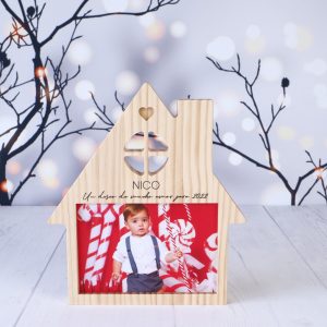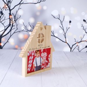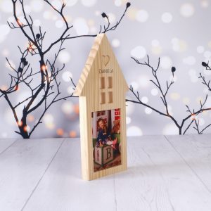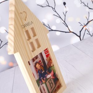 Preciosa casita en madera de pino. Formato torre para fotos verticales o formato casita chimenea para formato horizontal, se pueden usar para composiciones los dos modelos de casitas. No pasará inadvertida