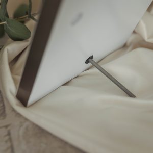 Marco en panel de pvc expandido con cantonera de aluminio, blanco o negro con patita para poner en sobre mesa o colgar de la pared. Grosor de 1,9cm. Material ligero y muy vistoso. La fotografía está laminada para su mejor conservación.